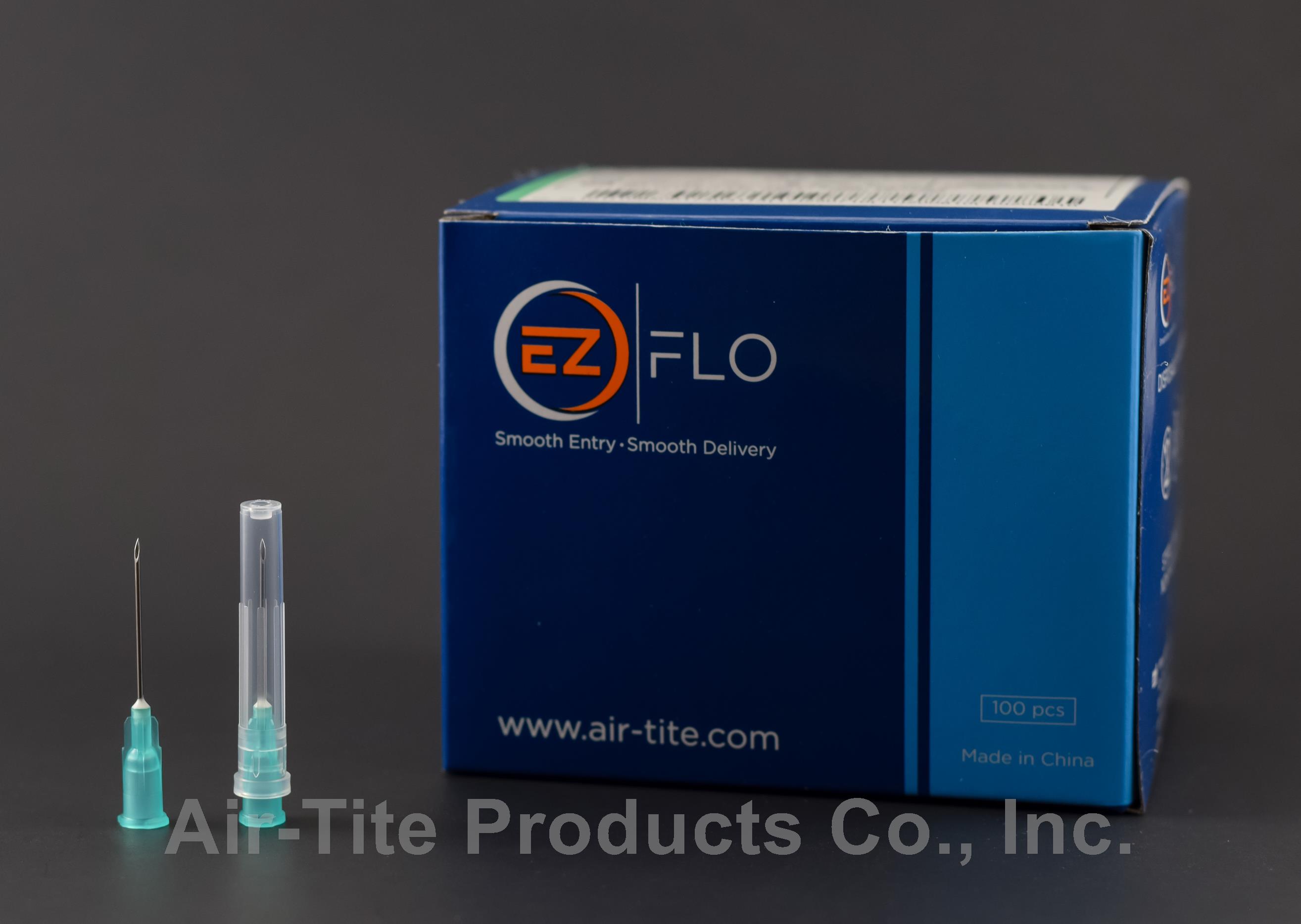 Air-Tite Product's newest addition, the EZ FLO line of hypodermic needles, offer high quality and a broad selection at an affordable price. Ranging from 18 gauge to 30 gauge, these needles offer a standard bevel, thin wall from 18g to 25g and regular-wall in 27g and 30g to combine comfort and durability. Each needle is sterile, individually packaged in a box of 100. Made of surgical stainless steel and a polypropylene hub.