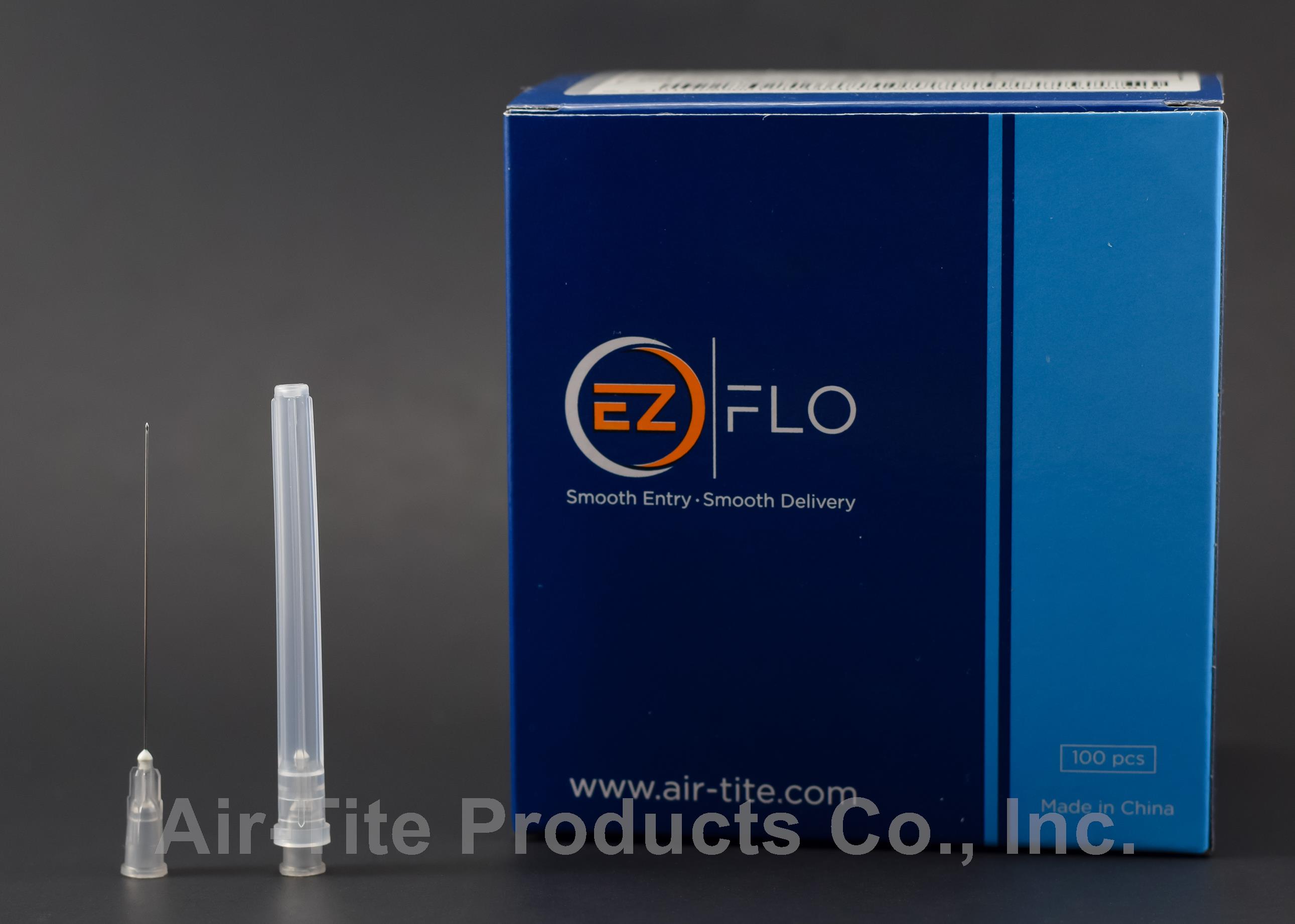 Air-Tite Product's newest addition, the EZ FLO line of hypodermic needles, offer high quality and a broad selection at an affordable price. Ranging from 18 gauge to 30 gauge, these needles offer a standard bevel, thin wall from 18g to 25g and regular-wall in 27g and 30g to combine comfort and durability. Each needle is sterile, individually packaged in a box of 100. Made of surgical stainless steel and a polypropylene hub.