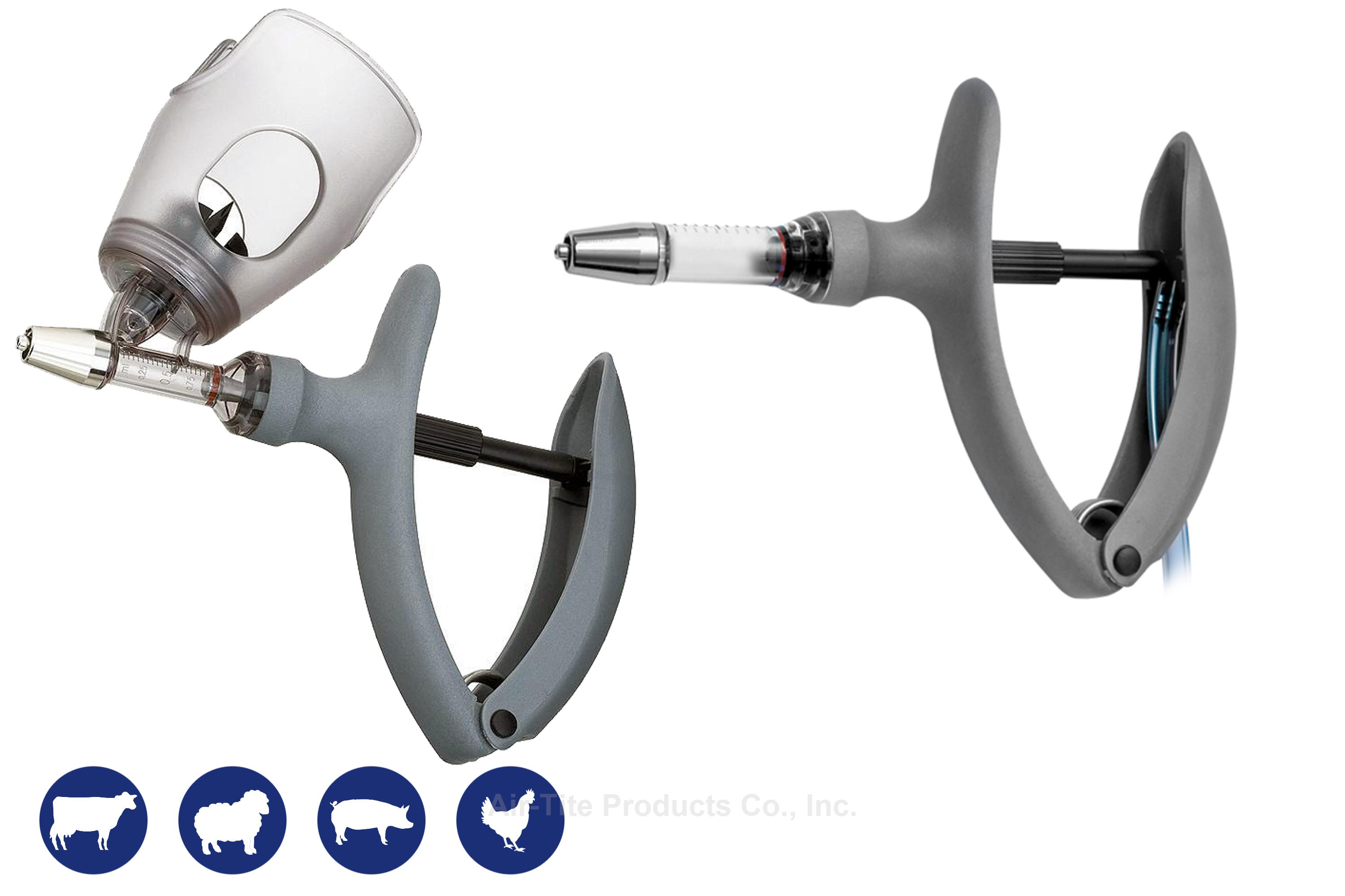 The Eco-Matic® is a durable, self-filling syringe for injections made from high strength plastic, featuring a strong metal Luer Lock needle fitting. For veterinary use only. Available in a tubing version which uses a draw off, or a bottle mount version for secure attachment of the medication bottle (50-100ml) directly on the syringe. CE Mark, ISO 9001 certified.